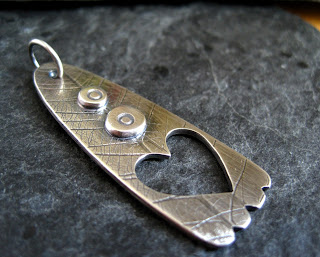 I'll be honest, the finished pendant is nothing like the original idea and design I drew apart from the shape and the pierced heart! It kind of evolved as I saw the shape and actual size of it as I was making it. The texturing is a bit uneven, the heart is off centre - it's definitely organic and a little bit quaint :D